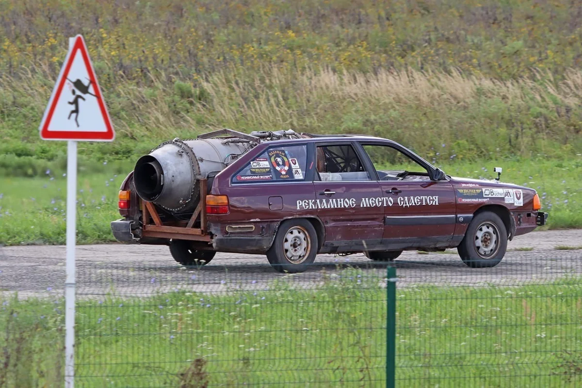 Калужские авиаторы поставили турбореактивный двигатель на старый автомобиль «Ауди»