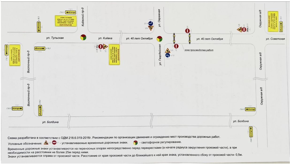 Схема перекрытия улицы 40 лет Октября ночью 14 октября.