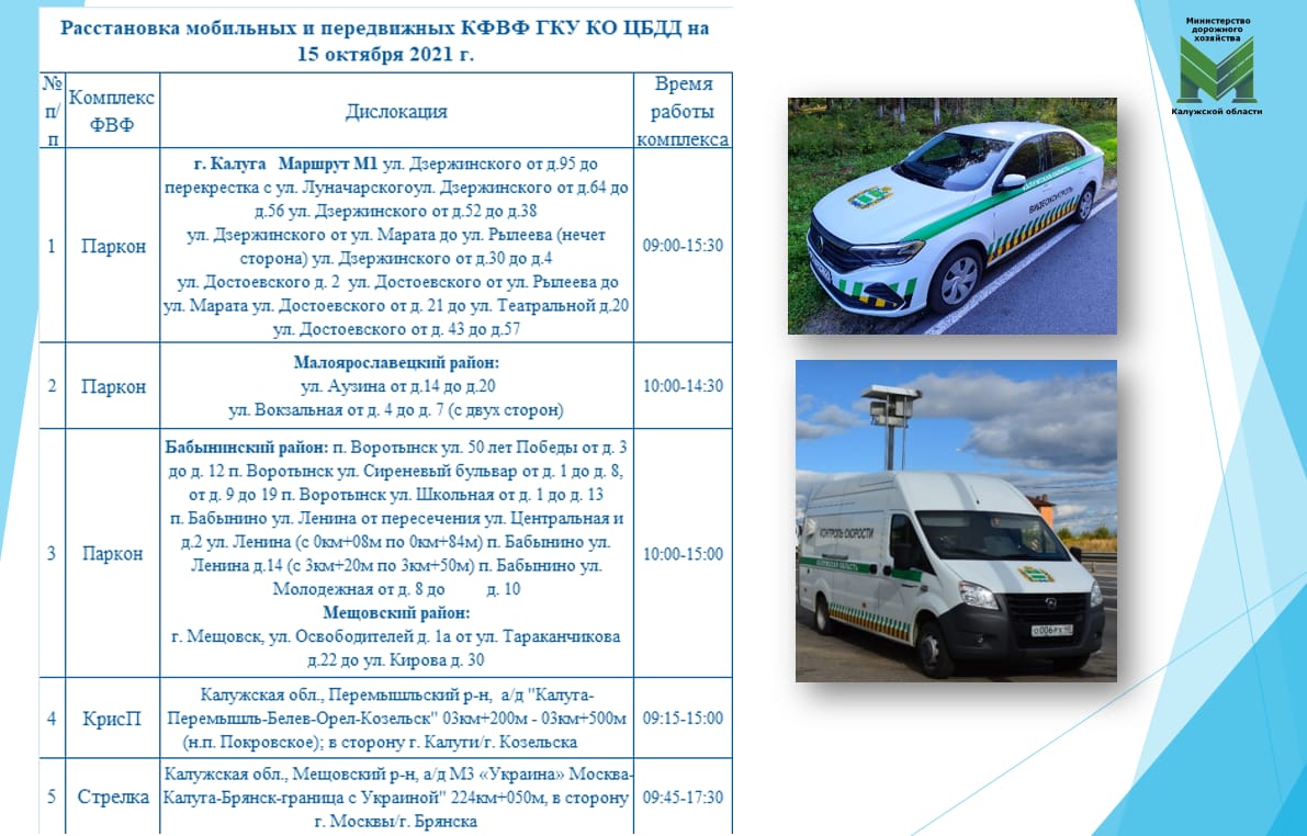 Опубликованы места установки мобильных дорожных камер в Калужской области 15 октября