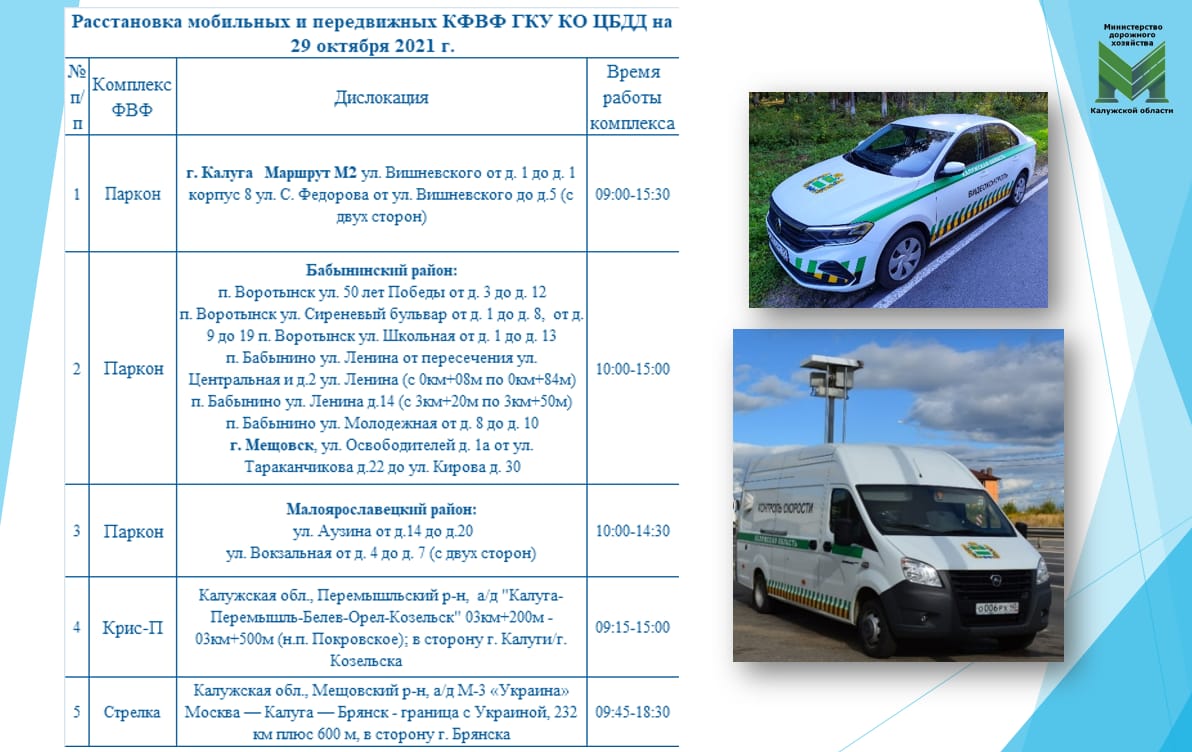 Опубликованы места установки мобильных дорожных камер в Калужской области 29 октября
