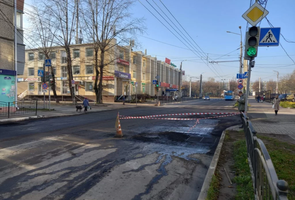 На улице Жукова верхний слой сняли из-за наличия там ям. В ночь на 1 ноября дорожники не успели уложить новый асфальт. Работы обещают завершить в ближайшие дни.