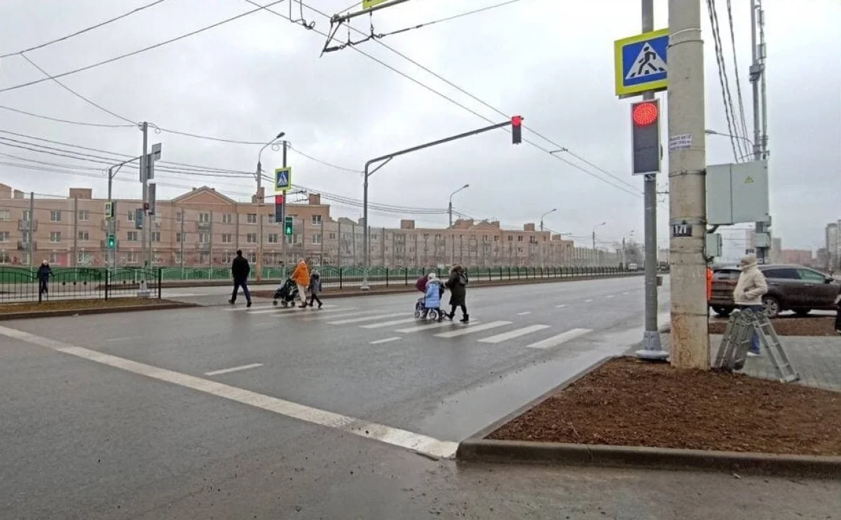 Пешеходный переход с вызывным светофором расположен у второго кольца – между микрорайонами Веснушки и Кошелев.