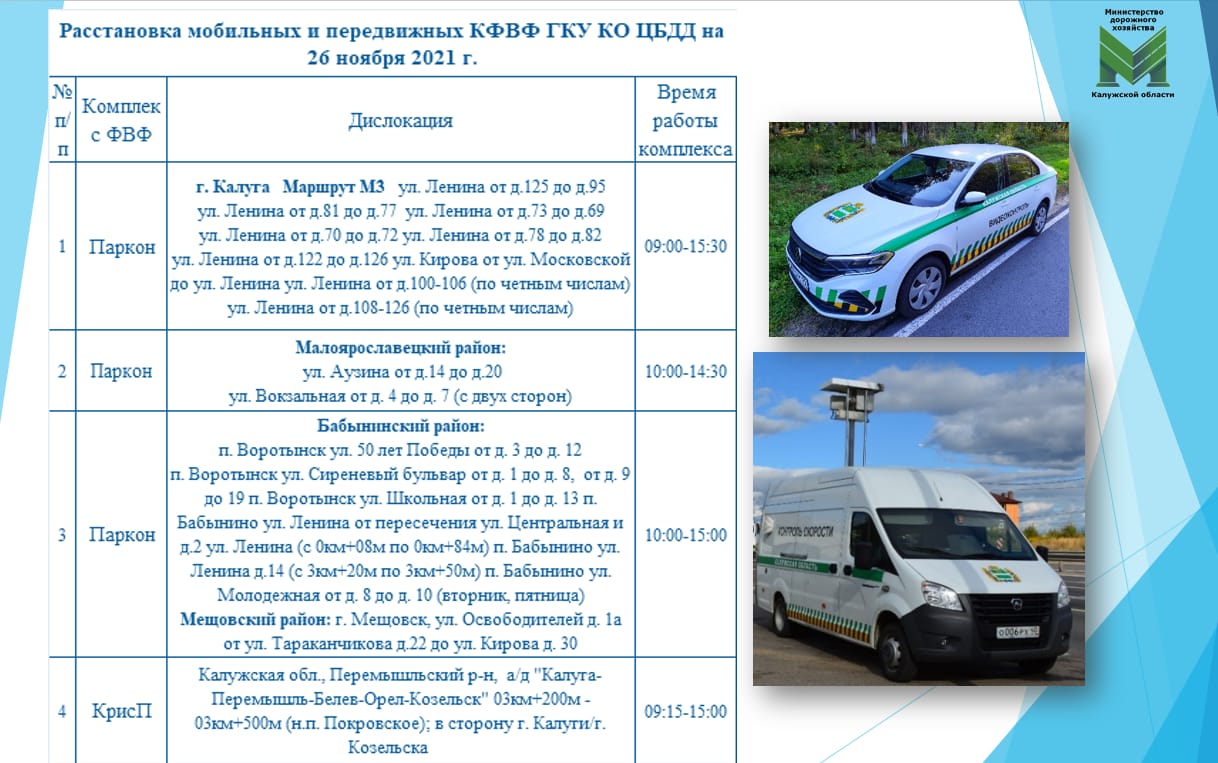 Опубликованы места установки мобильных дорожных камер в Калужской области 26 ноября