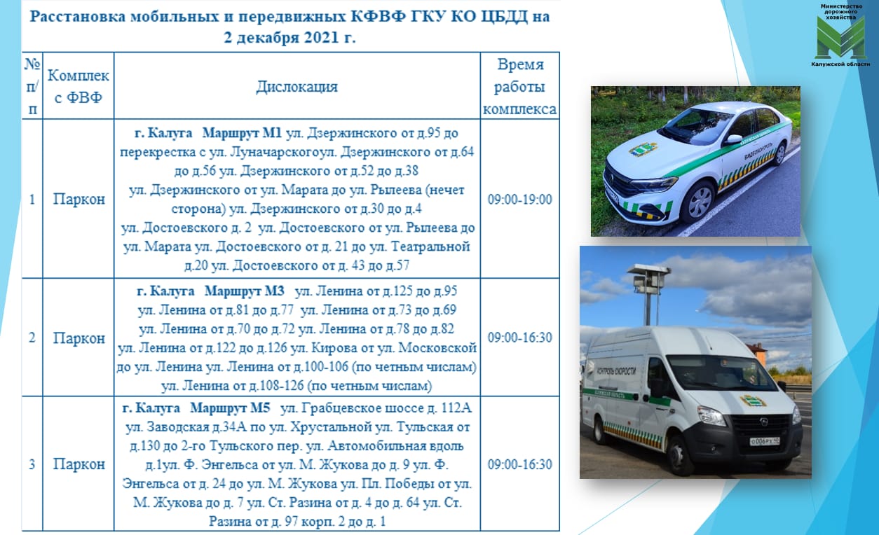 Расстановка мобильных камер на сегодня в Калуге и области.