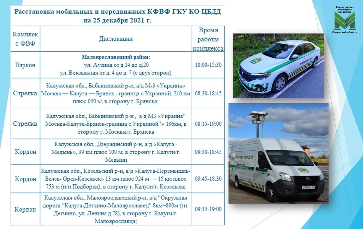 В субботу, 25 декабря, по данным «Центра безопасности дорожного движения», мобильные и передвижные камеры в Калуге работать не будут.