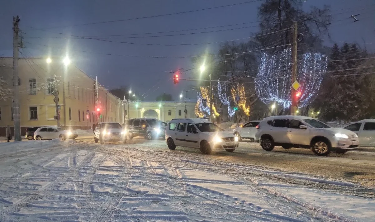 Утром во вторник, 18 января, на улицах Калуги затруднено движение после сильного снегопада, который накрыл город ночью.