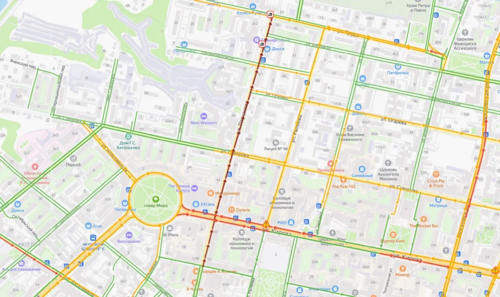 Пробка образовалась на километровом участке - от улицы Дзержинского до улицы Труда.