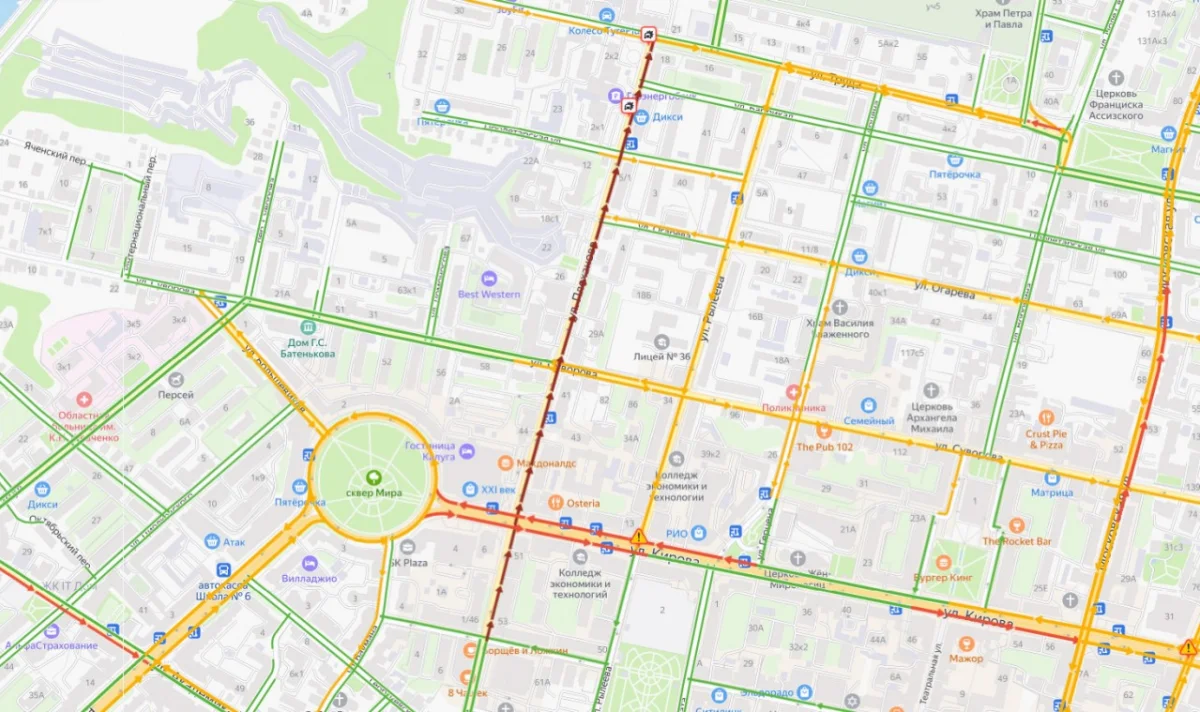 Днем в пятницу, 18 февраля, в Калуге затруднено движение на улице Плеханова.
