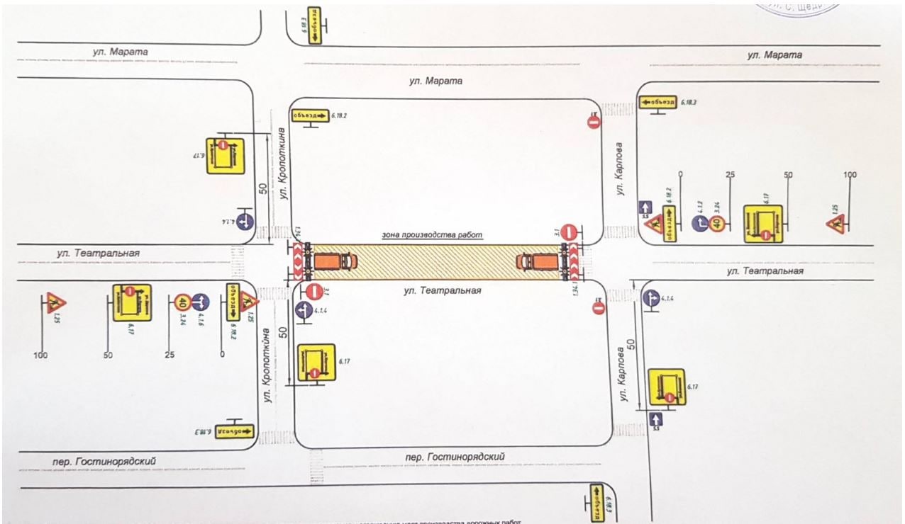 Перекрытие связано с работами по замене водопровода рядом с домом №43.