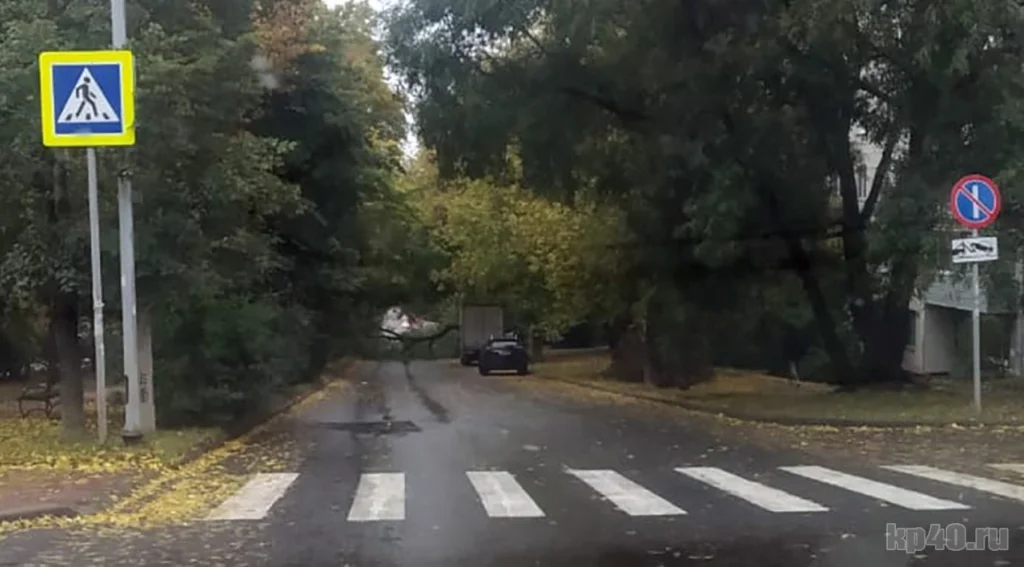 В Калуге упавшее дерево перекрыло движение на улице Степана Разина