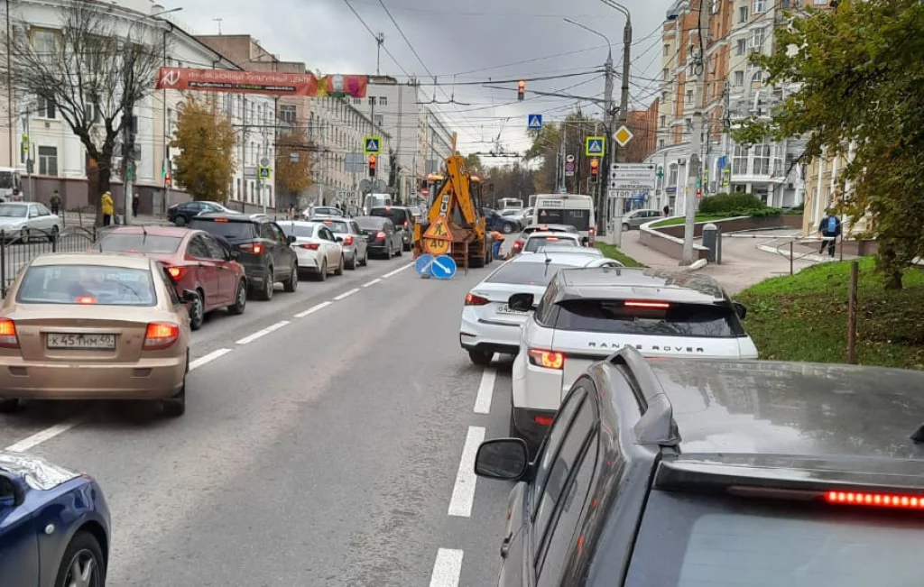 На улице Гагарина в Калуге образовалась пробка из-за дорожных работ