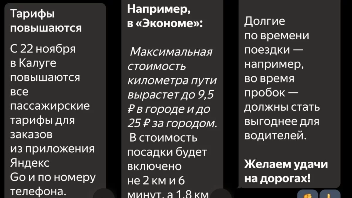 Это следует из сообщений, которые получили водители самого крупного агрегатора в Калуге.