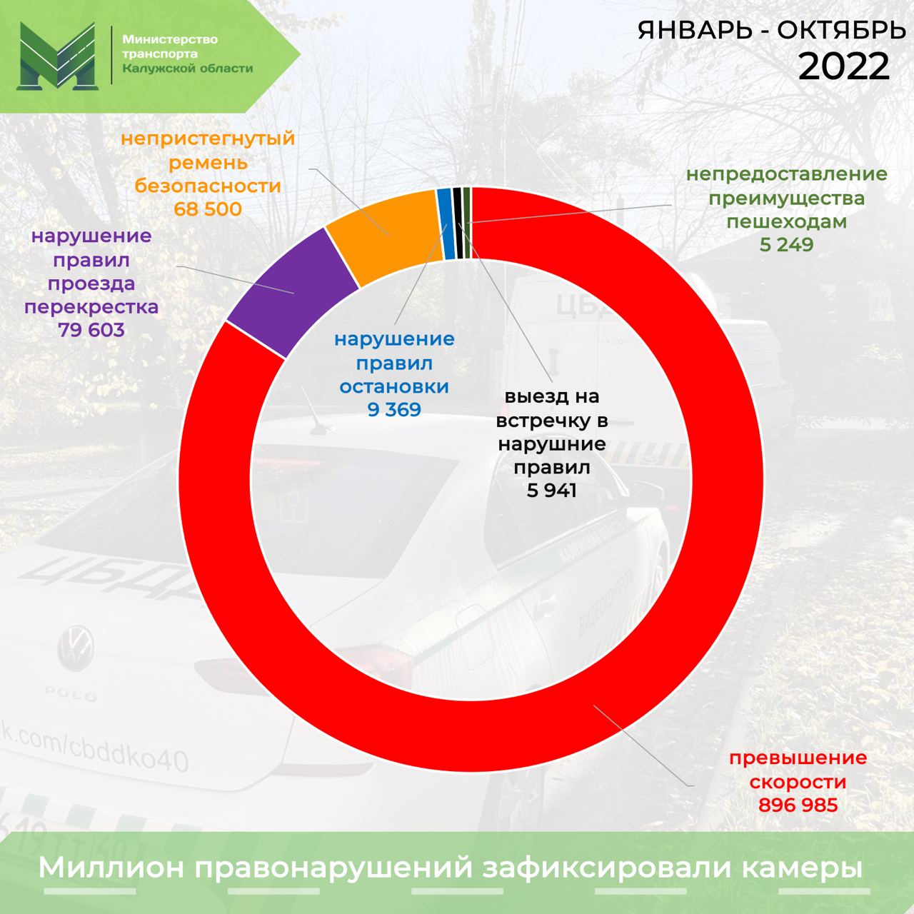С начала года в Калужской области дорожные камеры зафиксировали более миллиона нарушений. В пятницу, 25 ноября, об этом сообщили в региональном министерстве транспорта.