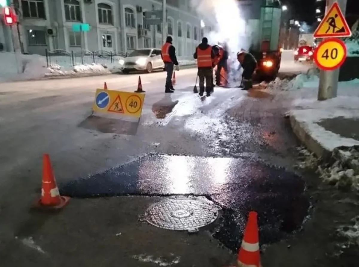 В городской управе напомнили, что зимой для ямочного ремонта используется литая асфальтобетонная смесь, которая применяется при температурах от -10 до +5. Ее температура – 200-220 градусов, поэтому оставшиеся влага и снег из ямы выпариваются.