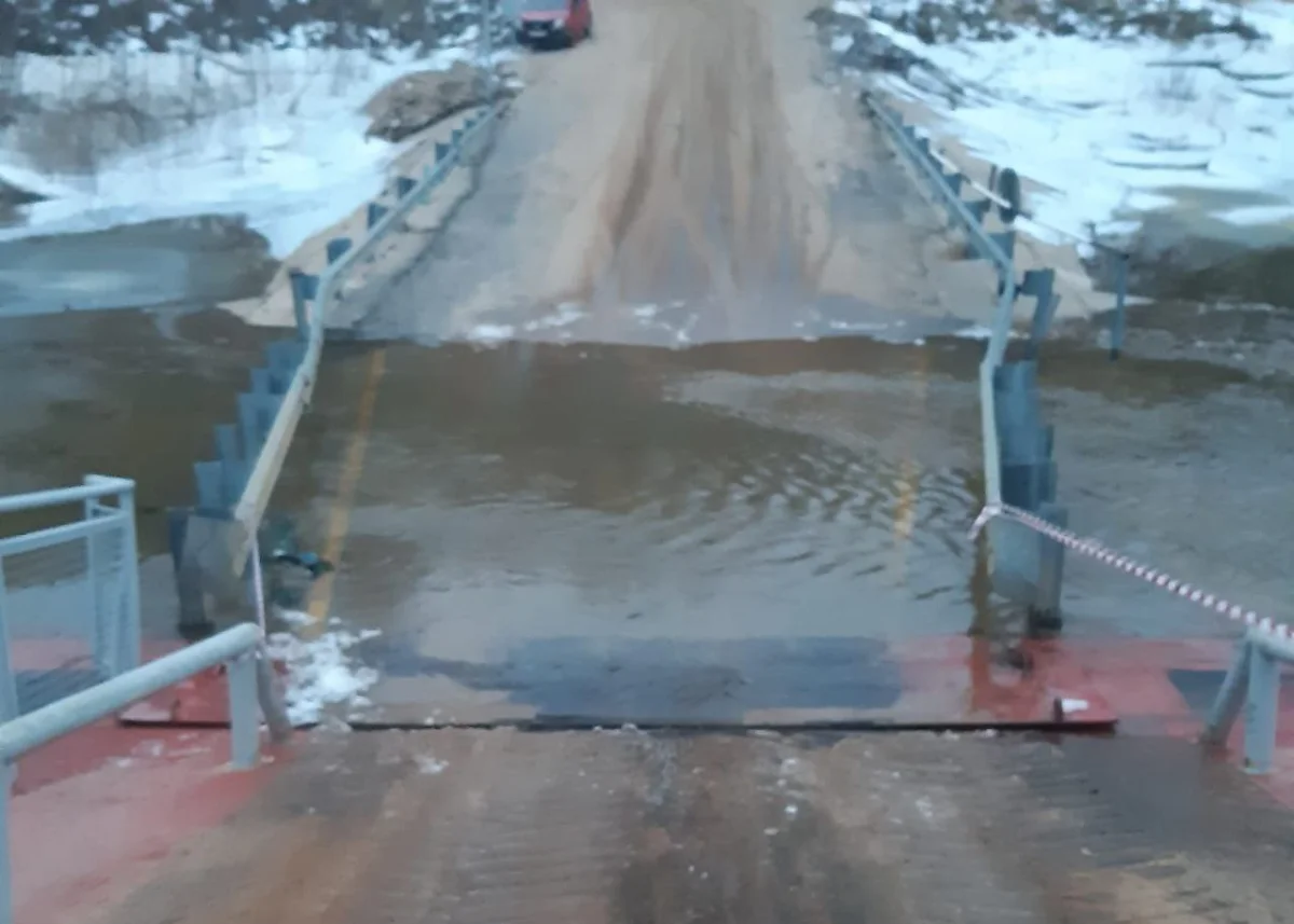 В понедельник, 23 января, понтонный мост через Оку в поселке Дугна Ферзиковского района затопило. Фото опубликовал глава местной администрации Алексей Волков.