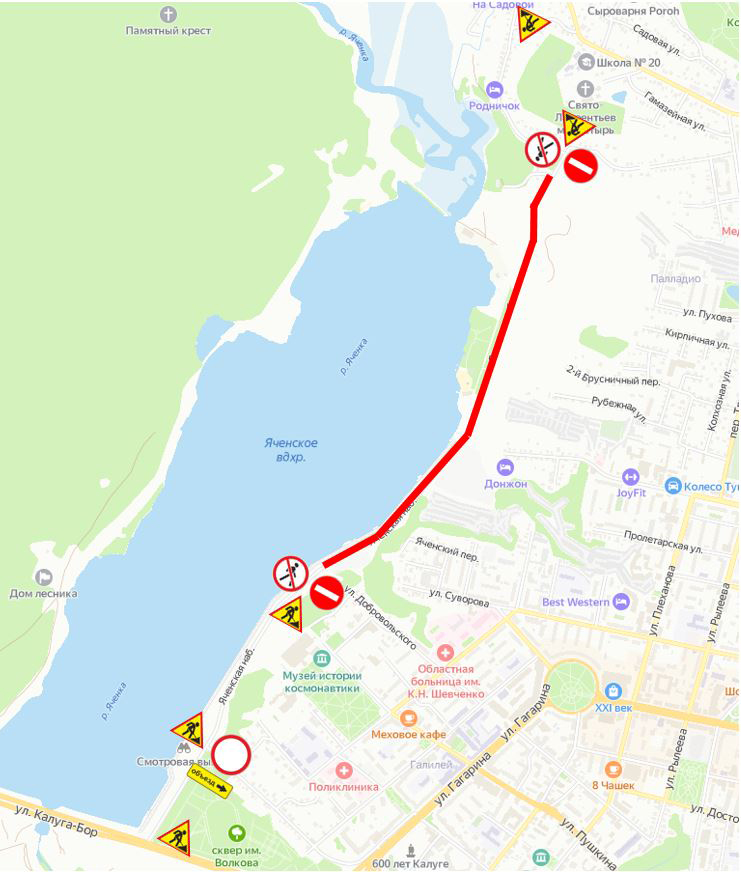 В четверг, 9 марта, в Калуге перекроют движение по участку набережной Яченского водохранилища от музея космонавтики до улицы Яченская водокачка.