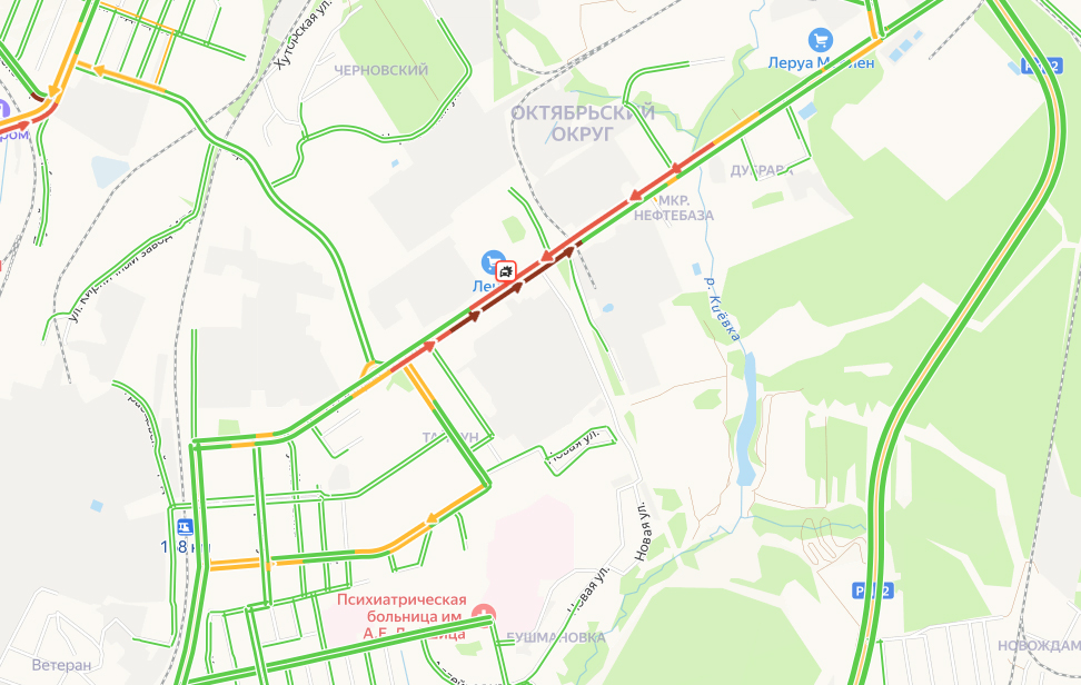 Движение затруднено и в сторону центра, и в сторону Грабцево.