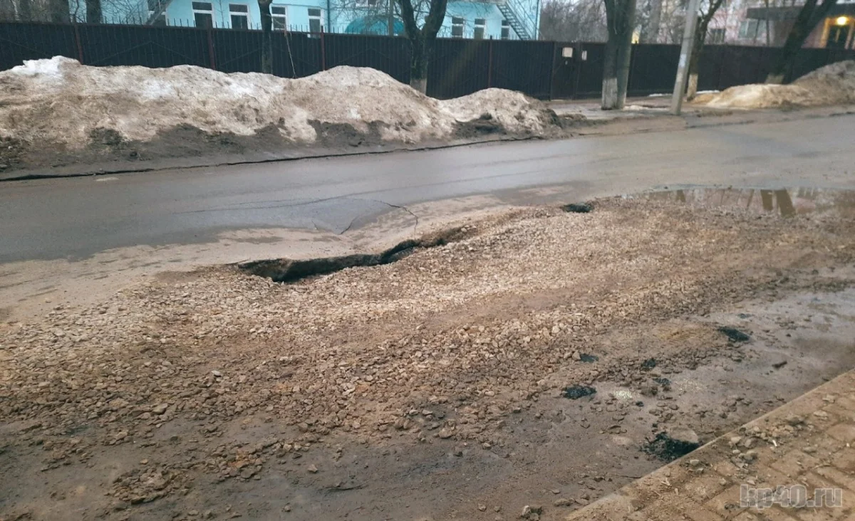 Под окнами здания, в котором расположено правительство Калужской области, на проезжей части провалился асфальт.