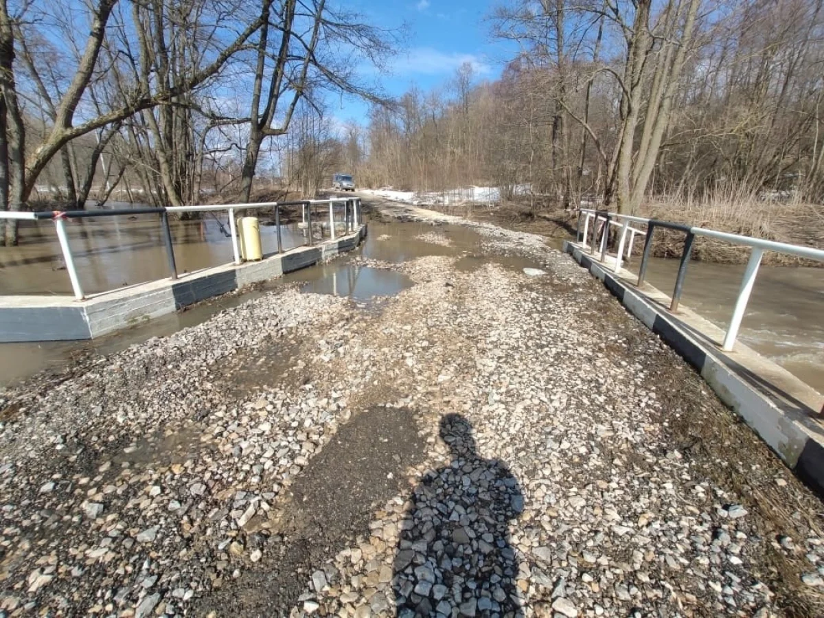 Днем во вторник, 28 марта, мост на дороге к улице Крымской в деревне Груздово на территории Калуги практически освободился от воды. Фото опубликовала городская служба спасения.