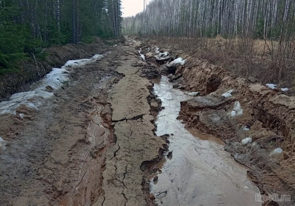 В четверг, 6 апреля, наша читательница Ирина Казакова пожаловалась на состояние дороги до деревни Голчань Перемышльского района.