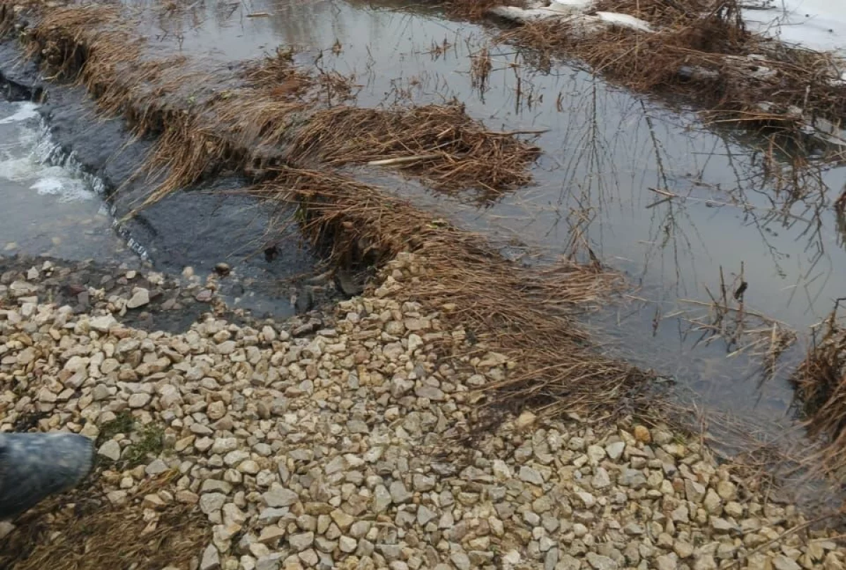 В пятницу, 7 апреля, стало известно, что еще одна дорога в Калужской области не прошла испытание паводком. Житель деревни Живодовка Сухиничского района опубликовал фото и видео размытой проезжей части.