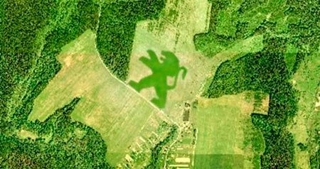 Символ Peugeot с 200-летней историей гармонично дополнил природный ландшафт участка. Объект «Травоядный хищник» создавался при помощи GPS навигации со спутника и современного теодолита. Его площадь составляет 2,7 гектара (135х200 метров)! По замыслу, лев «стоит» прямо на дороге, которая разделяет соседние поля.