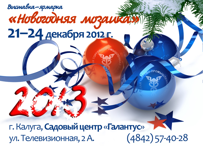 С 21 по 24 декабря Калужская Торгово-промышленная палата приглашает всех желающих посетить выставку-ярмарку «Новогодняя мозаика».