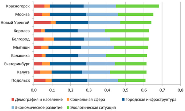 Оценка устойчивого развития городов производилась на основе анализа 32 статистических показателей, характеризующих город по трем основным категориям: состоянию экономики и городского хозяйства, социальной сферы, а также экологической обстановке.