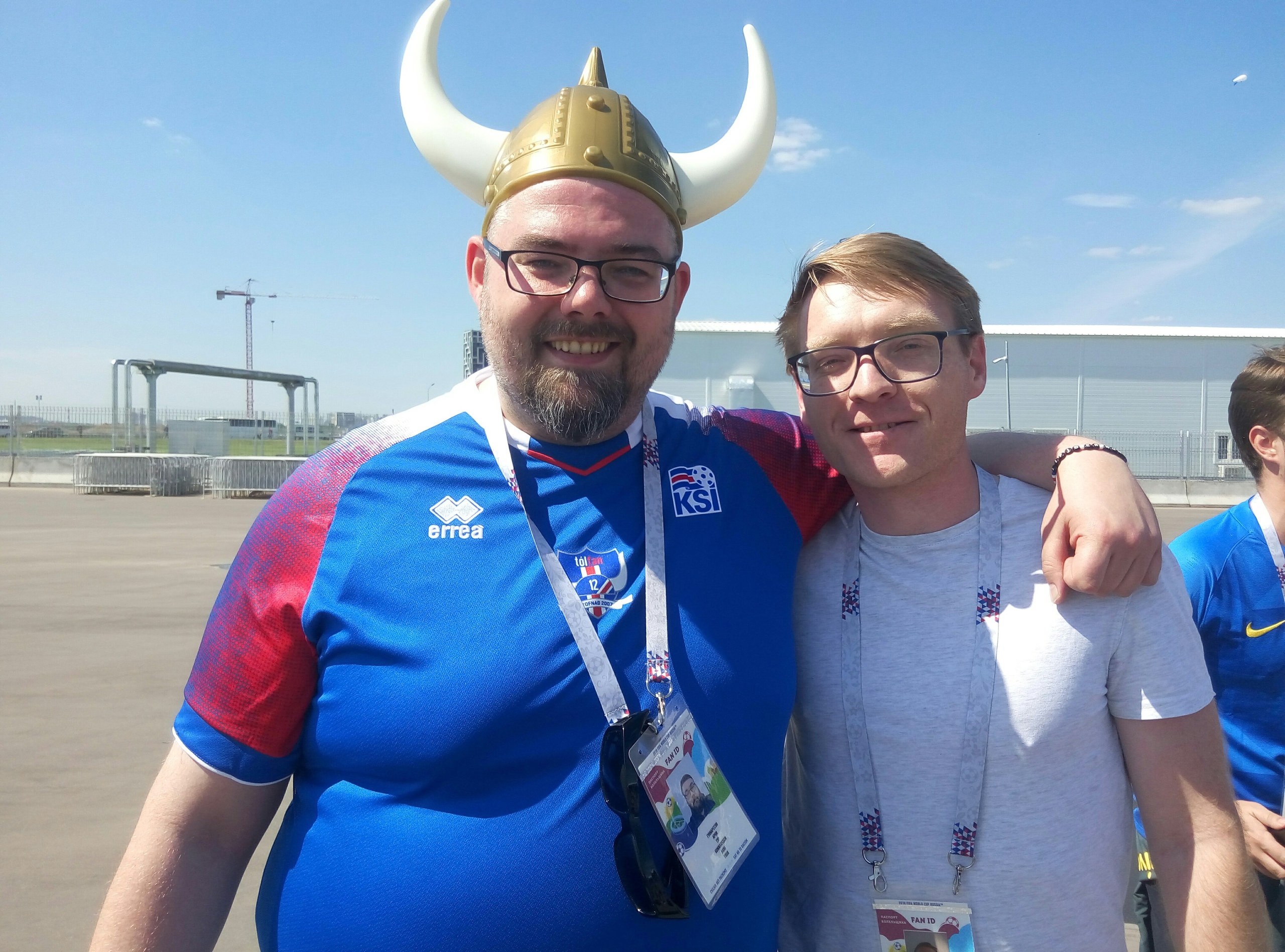 Исландские болельщики как на подбор — крупные, высокие! Справа — автор.