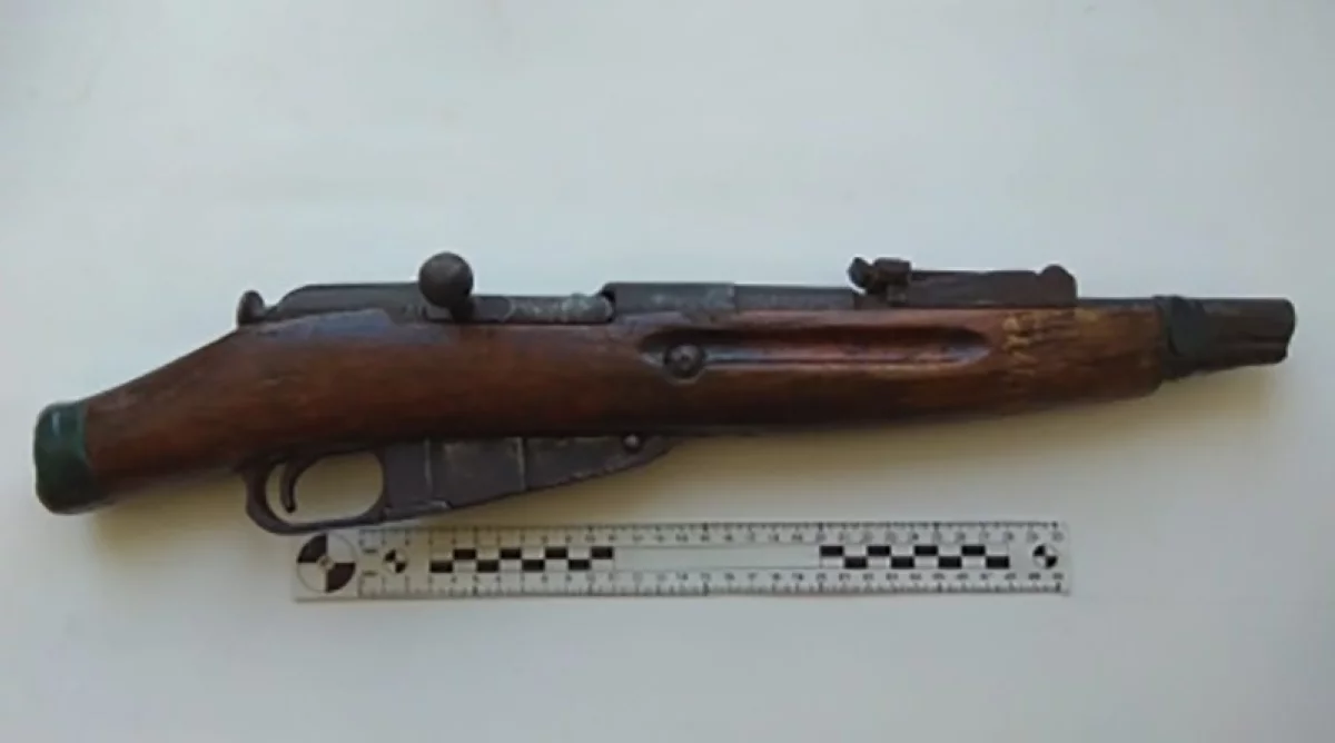 При обыске квартиры подозреваемого был найден обрез, изготовленный из заводской магазинной винтовки конструкции Мосина 1942 года выпуска. По словам мужчины, он нашел оружие на улице и забрал его себе.
