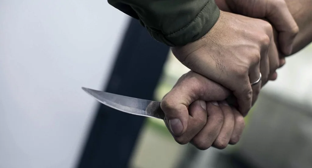 Между женщинами начался конфликт. Мужчина вступился за свою подругу, схватил свою дочь и приставил к ее горлу нож. На помощь пришел муж женщины.