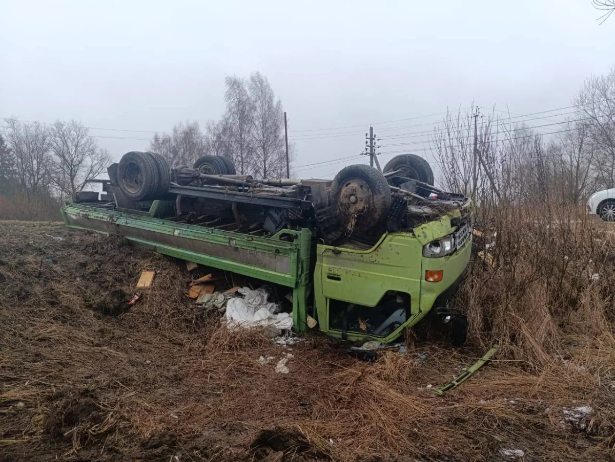 Водитель не справился с управлением, съехал с дороги и опрокинул автомобиль в кювет.