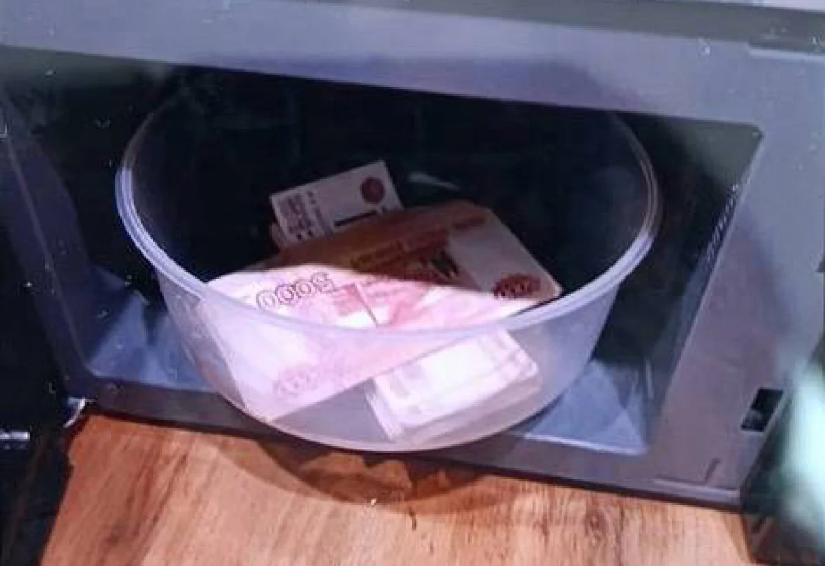 Испугавшаяся женщина поверила. Она сняла со счетов 800 тысяч рублей, причём в банке не стала говорить настоящую причину снятия наличных. Дальше ей сказали, что для передачи денег на экспертизу нужно приехать в другой город. Пенсионерка вместе с мужем села в машину, доехала до нужного адреса, нашла квартиру с кодовым замком и оставила купюры в микроволновке. Для подтверждения она даже сфотографировала тайник и отправила снимок мошенникам.