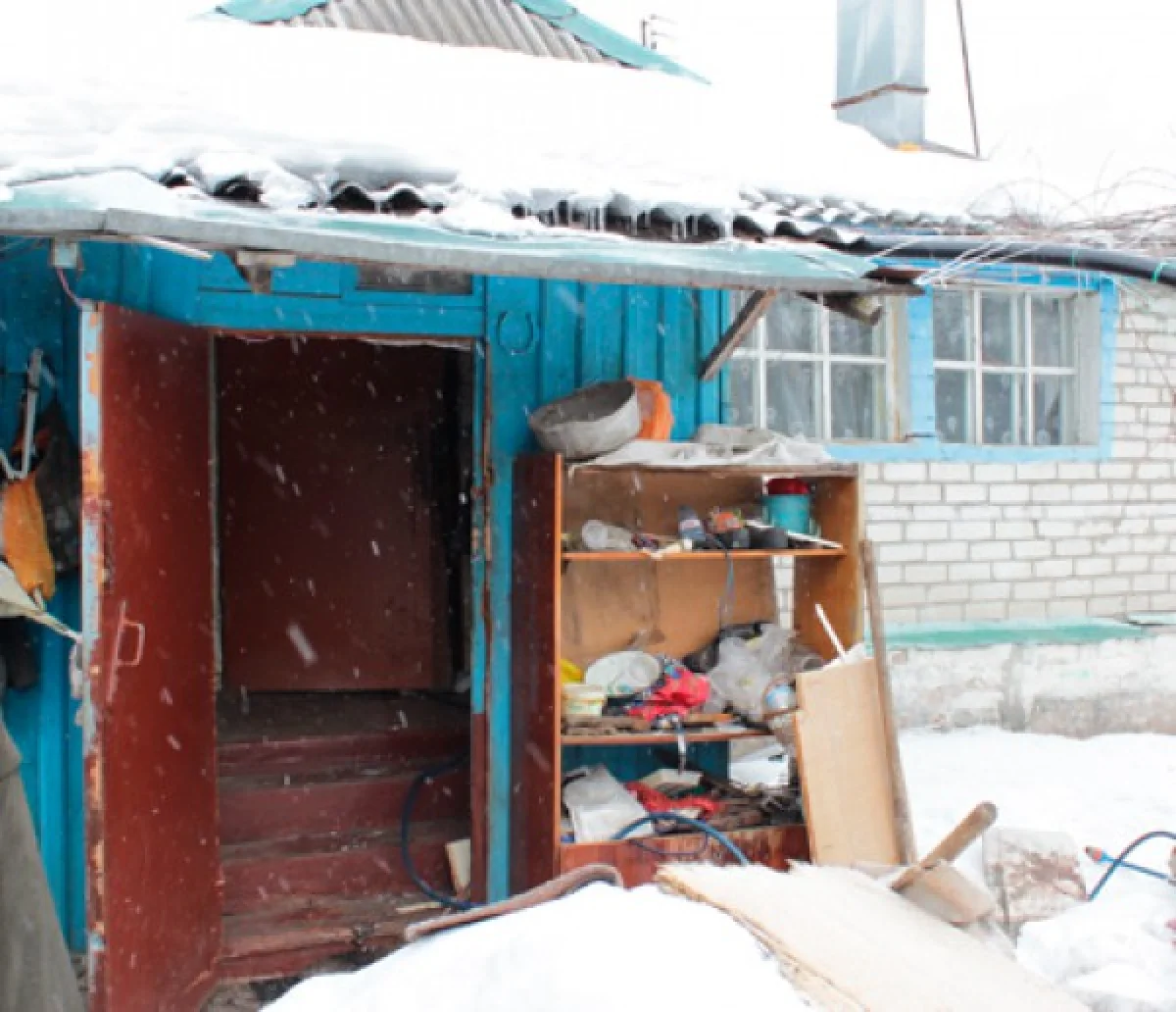 Спускаясь по заледенелой дорожке к дому, где все случилось, ожидаешь увидеть кровавые следы, разруху от взрыва и последующего за ним пожара. Однако дворик вполне чистый. Несколько сараев перед домом распахнуты настежь, открыта и дверь в квартиру, где произошла трагедия. Когда мы пришли, в доме, помимо жены погибшего пенсионера, находилась ее дочь.