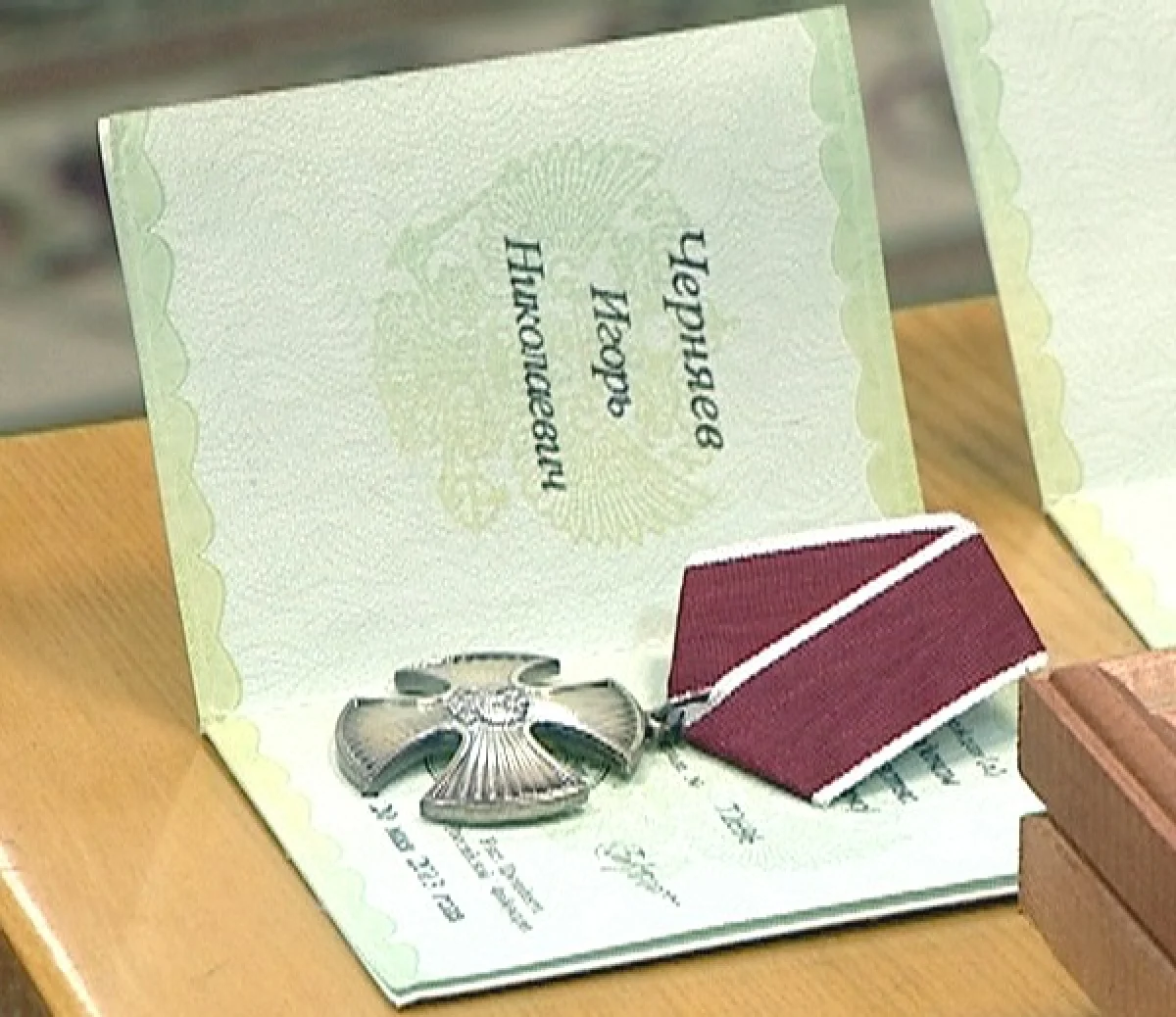 Орден мужества руководитель управления МВД по Калужской области Олег ТОРУБАРОВ передал в среду, 24 июля, родителям Игоря ЧЕРНЯЕВА - 22-летнего инспектора ДПС, которого зарезали на посту 30 ноября 2009 года.