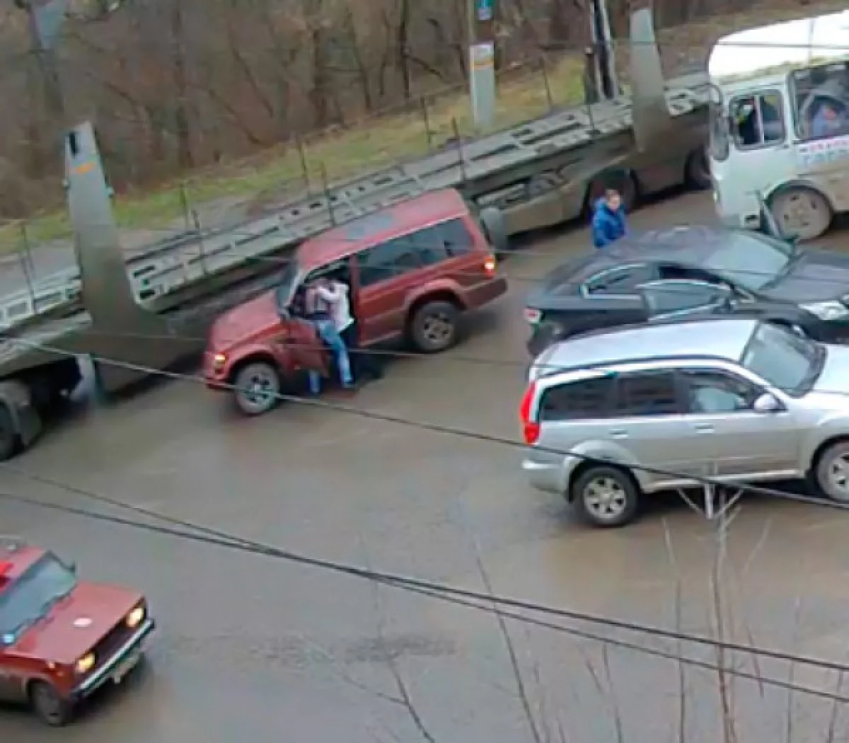 Водителю и пассажиру «Тойоты» не понравилось, что они должны были пропустить фуру.