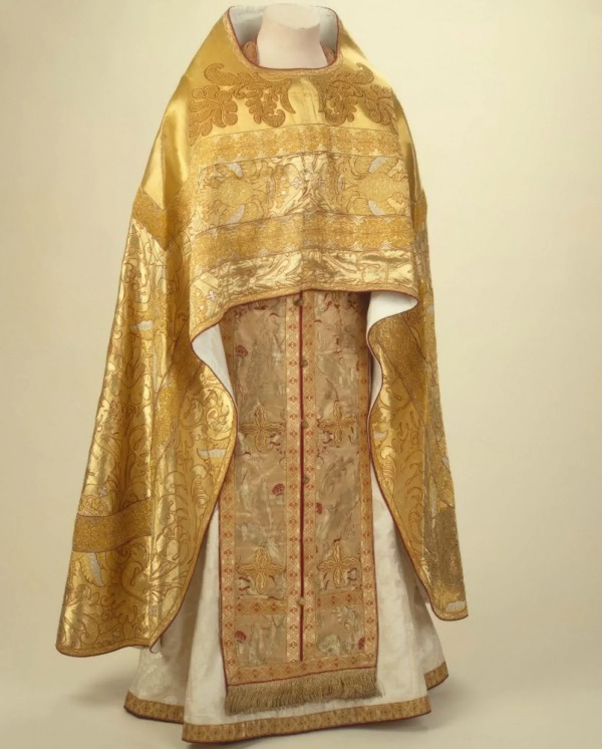 Мужчина вынес церковную утварь: крестики, крестильный набор, три облачения для совершения богослужения, шарфы, кухонные полотенца, одеколон, бумажные полотенца и кагор.