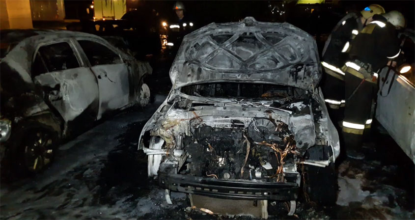 Для тушения к месту пожара прибыли 2 пожарных расчёта, которые залили машины специальной пеной. Пламя бушевало сильно, что хорошо видно на кадрах видео. Пожарным не сразу удалось справиться с огнём.
