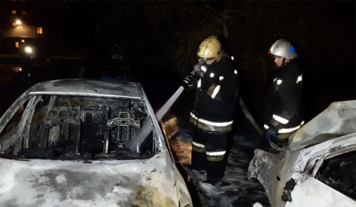 Для тушения к месту пожара прибыли 2 пожарных расчёта, которые залили машины специальной пеной. Пламя бушевало сильно, что хорошо видно на кадрах видео. Пожарным не сразу удалось справиться с огнём.