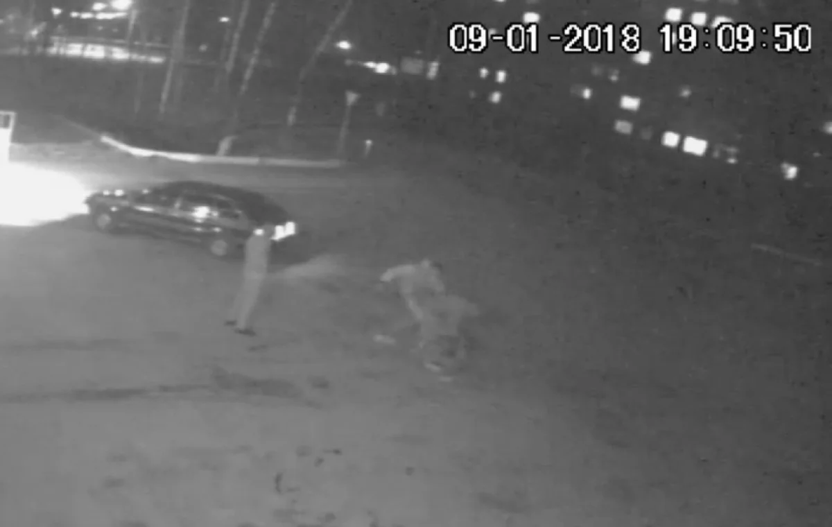 Наше видео начинается с того момента, где Виталий засовывает руку за пазуху, проверяя что-то (00:03). Затем к ним подходит Павел, его знакомый чуть притормаживает, чтобы прикурить. Павел останавливается перед Виталием, из-за спины последнего вылетает Дмитрий и сразу наносит удар в лицо Павлу (00:20). По словам свидетеля, Павел даже слова сказать не успел.