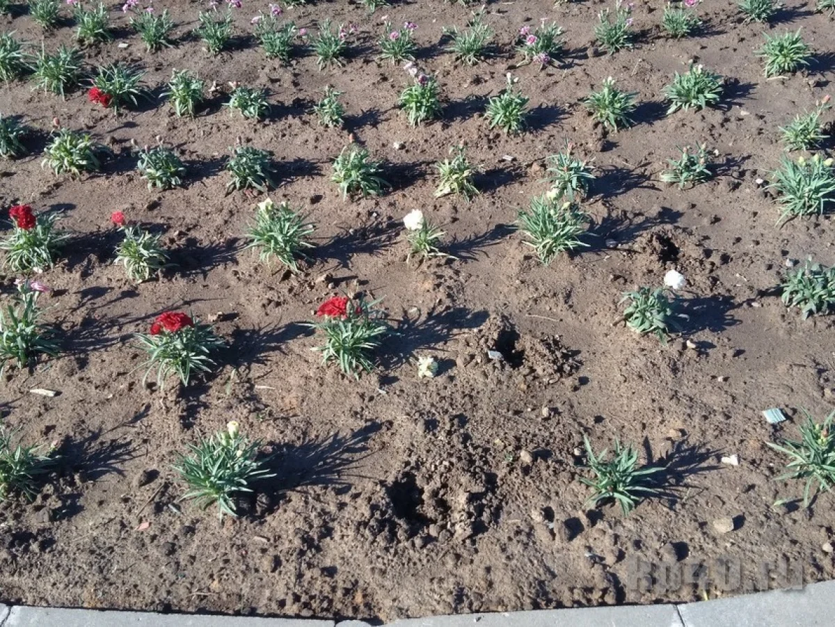 Не успели в новом парке на месте рынка высадить растения, как они стали пропадать. Практически с каждой клумбы исчезли по 1-2 цветка, об их существовании сейчас напоминают лишь оставшиеся на их месте ямки.