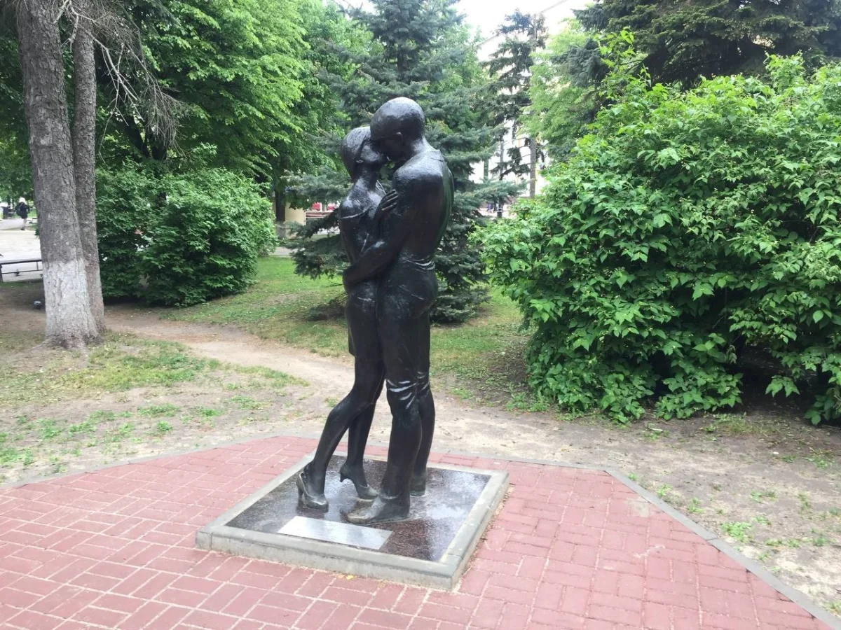 Наш подписчик Николай через бот обратной связи во вторник, 23 мая, прислал нам грустное видео скульптуры «Поцелуй» на Театральной площади Калуги.