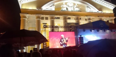 Вечерний концерт на порожках драмтеатра в Калуге прошел под дождём