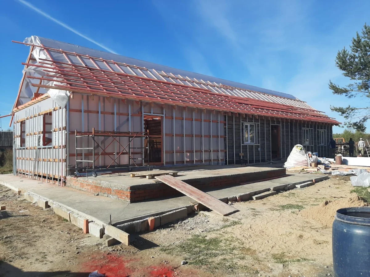 Стены обшивают композитными панелями. Также впереди еще монтаж кровли и внутренняя отделка.