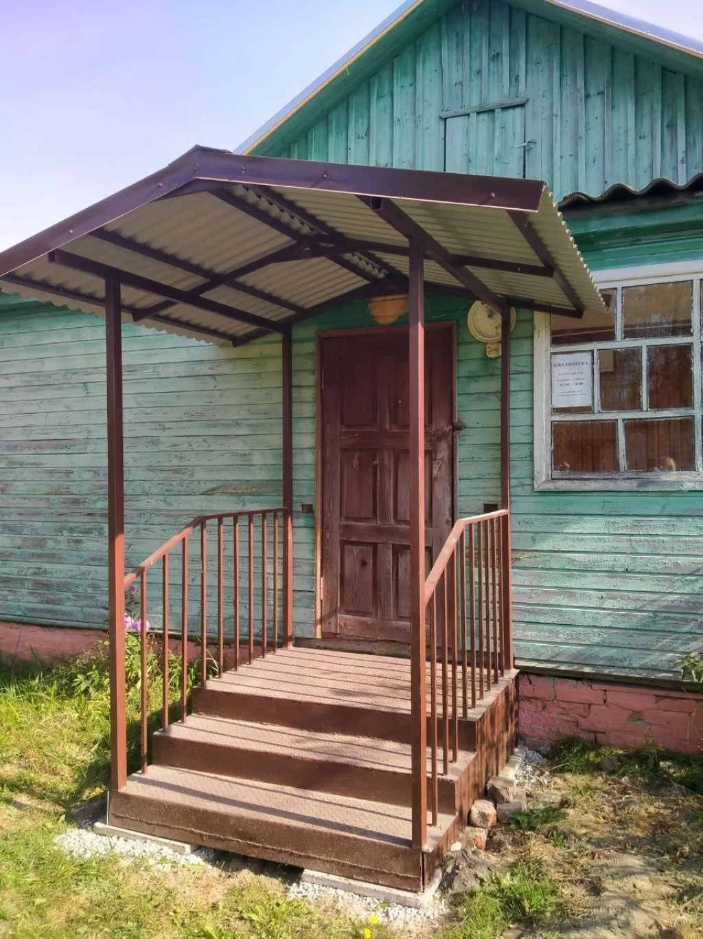 Обновлено крыльцо с навесом, установлены стеллажи для книг и столы.