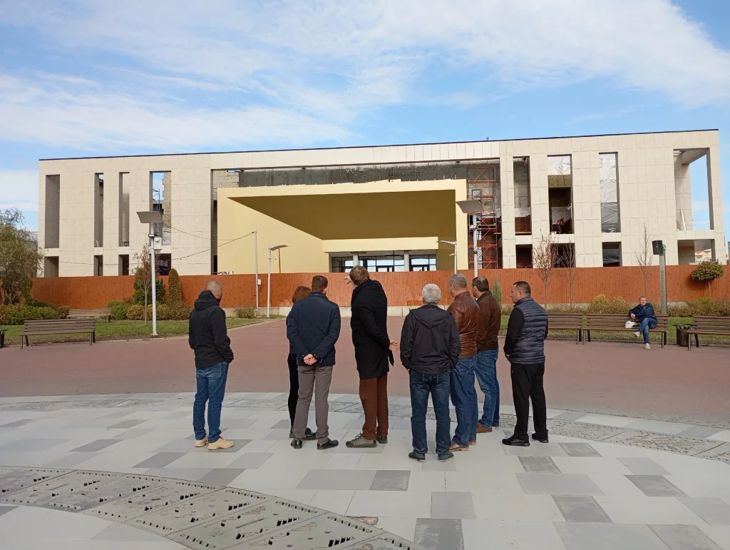 Внутри здания продолжается отделка, а на фасаде уже монтируют декоративные элементы.
