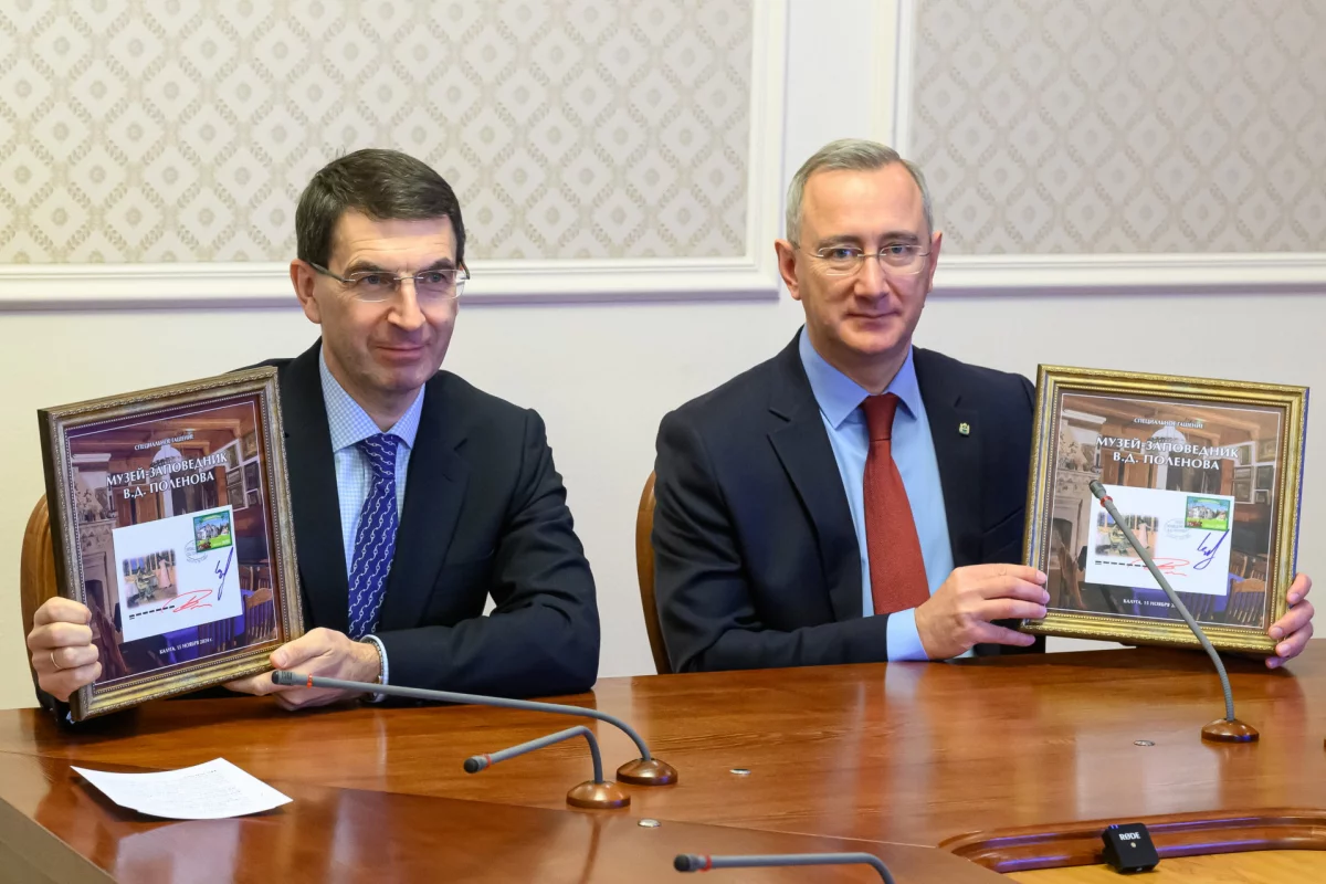Они одновременно погасили почтовую марку с мемориальным домом-музеем Поленова.