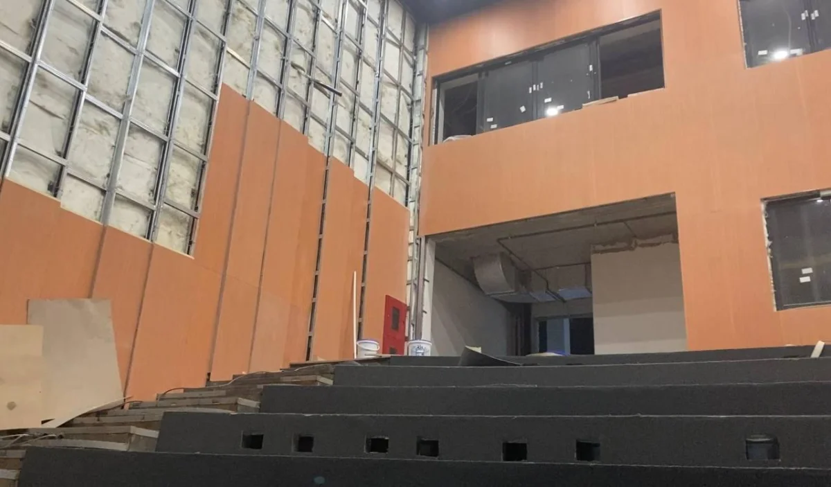 Третий этаж уже готов, там завершили отделку большого зала. Рабочие начали убирать строительные «леса».