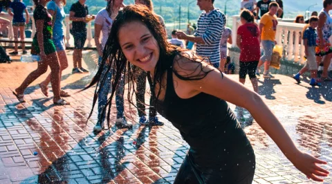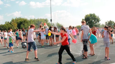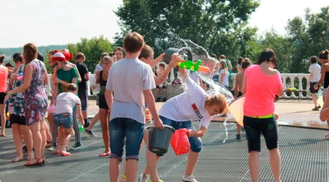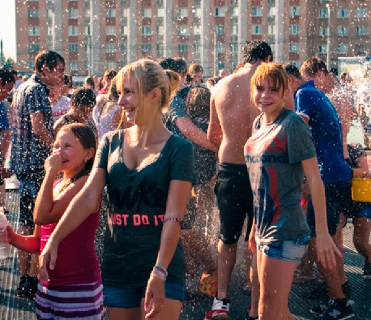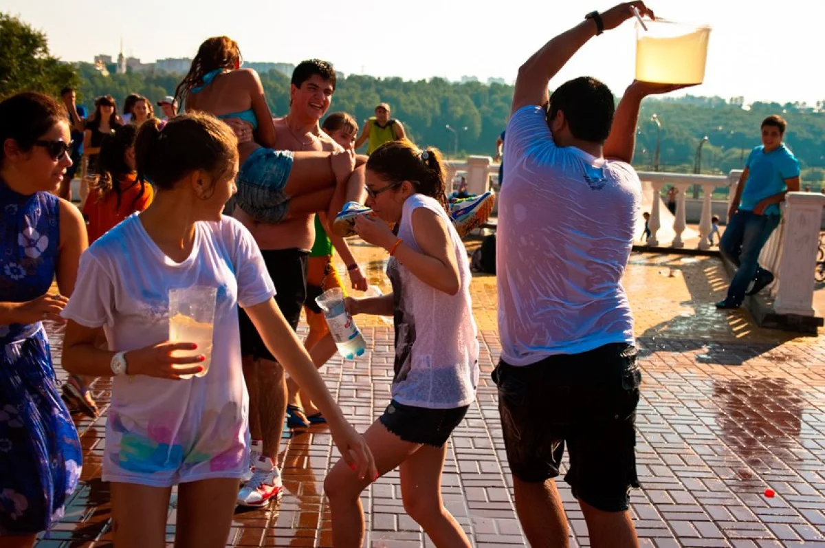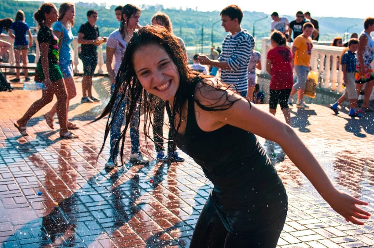 В прошлом году подобное мероприятие проводили на Театральной площади. Ребята признались, что хоть места там и меньше, зато воду из фонтана черпать удобнее. В «Торнадо» ведь она просто бьет струей вверх. Однако и это не помешало подросткам вымочить друг друга с головы до ног. А заодно получить заряд положительных эмоций.