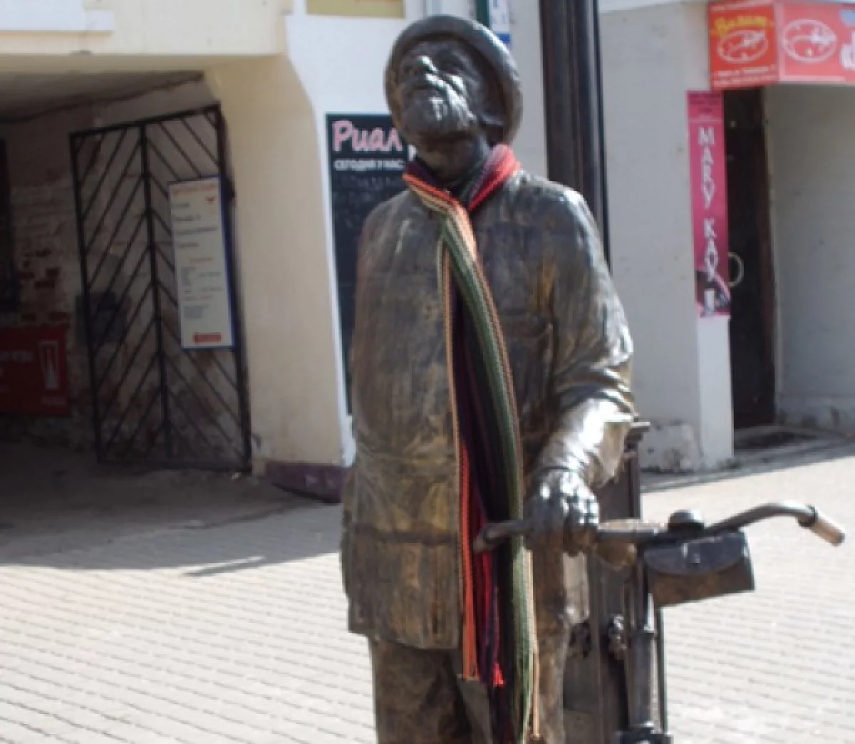 Шарфы в четверг, 12 сентября, повязали девушке возле театра и Циолковскому с велосипедом на Театральной улице. Кто именно дополнил таким образом скульптуры – пока неизвестно.